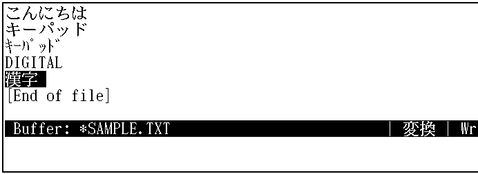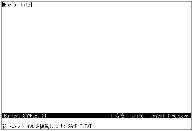 日本語EVEを起動して,SAMPLE.TXTというファイルを作成します。