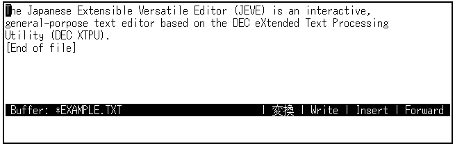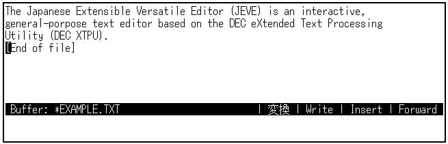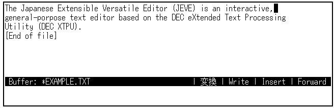 日本語EVEを終了するときは,[Ctrl/Z]を押します。編集セッションは終了し, SAMPLE.TXTというファイルが作成されます。