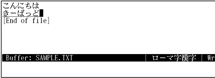 もう1度[Return]キーを押して,改行してください。新しい行に,kanjiと入力します。 画面上には,"かんじ"と表示されます。続けて,スペース・バーを押します。
