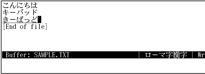 もう一度[Return]キーを押して,改行してください。新しい行に再び, ki-paddoと入力します。画面上には,"きーぱっど"と表示されます。