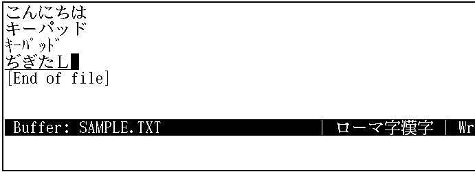 もう一度[Return]キーを押して,改行してください。新しい行に, DIGITALと入力します(大文字を入力するときは,[Shift]キーを押しながら, 文字をタイプします)。画面上には,"ぢぎたL"と表示されます。
