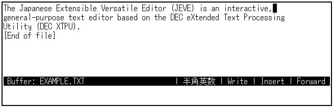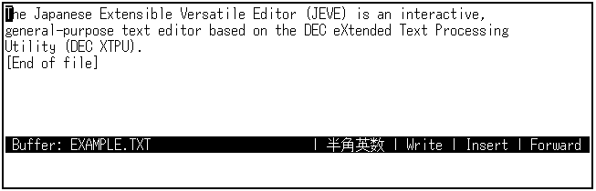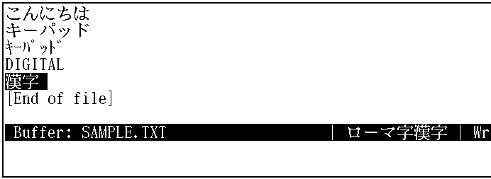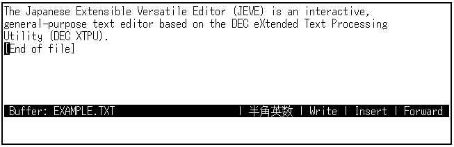 日本語EVEを終了するときは,[Ctrl/Z]を押します。編集セッションは終了し, SAMPLE.TXTというファイルが作成されます。