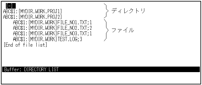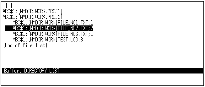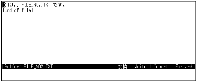 | INCLUDE FILE | 指定したファイルの内容をバッファの現在のカーソル位置の前の行に挿入する。 複数のファイルの内容を1つのファイルにまとめるのに便利。 |