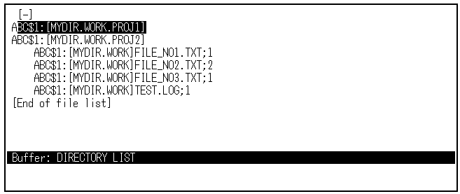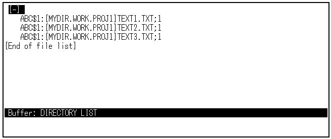 [Do]キーを押して,日本語EVEの INCLUDE FILE コマンドを入力することにより, ファイル全体をバッファに追加できます。コマンド・ウィンドウの Include File:というプロンプトに対してファイル名を入力します ( SET DIRECTORY LIST コマンドを使用していないとき)。