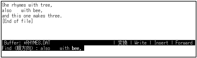 日本語EVEが挿入モード(Insert)であるかどうかを, ステータス・ラインで確認してください。