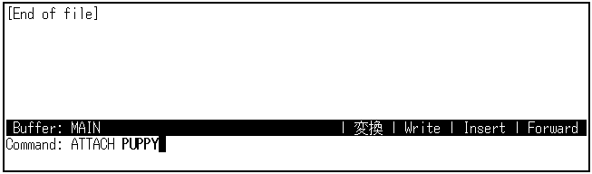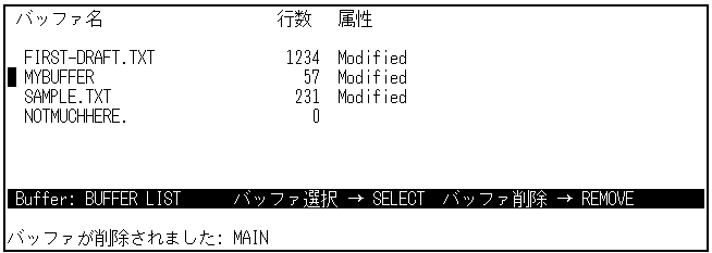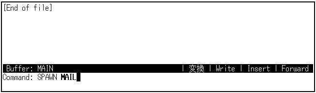 | NEW | 新しいバッファを作成し, 現在のウィンドウに表示する。カーソルは新しいバッファの先頭に移動する。 新しいバッファの名前はMAINになる。MAINバッファがすでに存在する場合は, バッファ名の入力をうながすプロンプトが表示される。 |