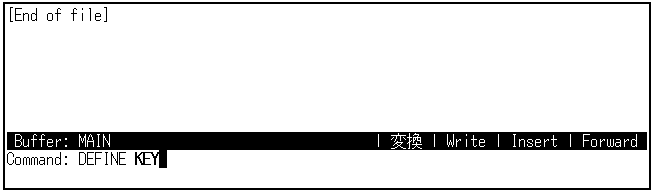 | SET CURSOR BOUND | カーソルがテキストのある範囲内だけを移動するようにする。 カーソルはバッファの使用されていない部分には移動できない。カーソルの動きは, EDT,WPSなどのエディタと同様。 |