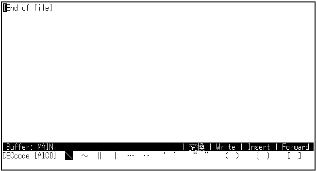 KIGOU コマンドを実行すると,画面の1番下(ステータス・ラインの下)に DEC漢字コード一覧表が1行ずつ表示されます。