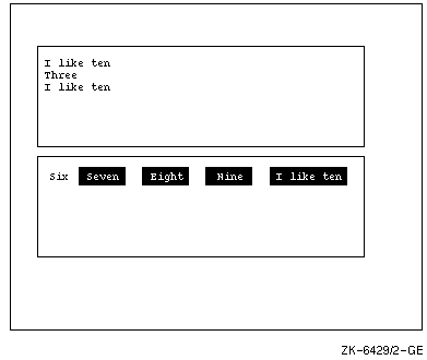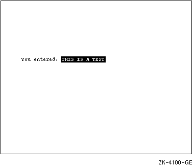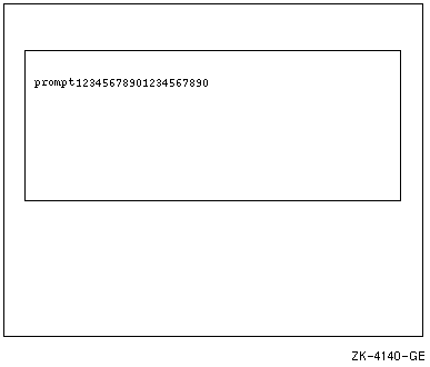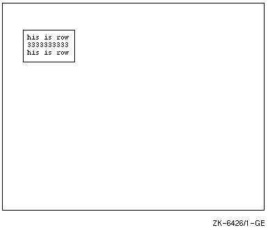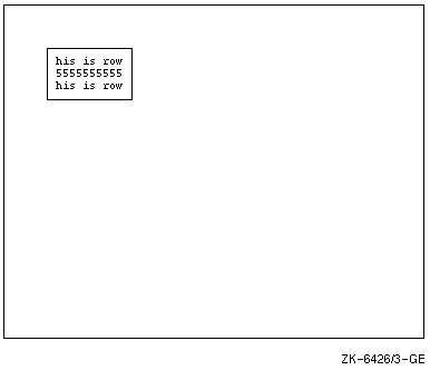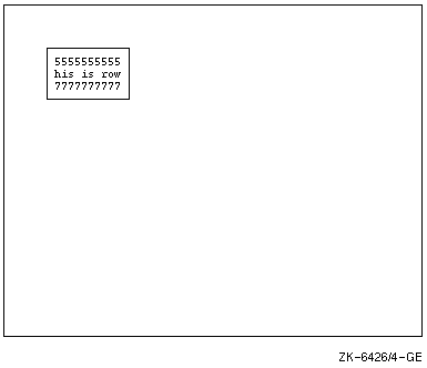 このFORTRANプログラムがSMG$INSERT_CHARSルーチンを呼んだ後に生成する出力は, 図 SMG-25に示すとおりです。