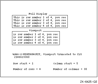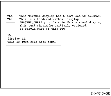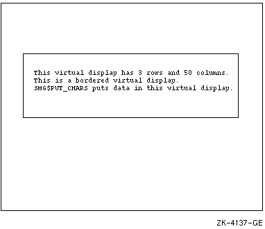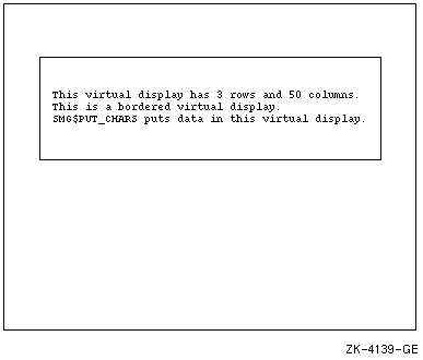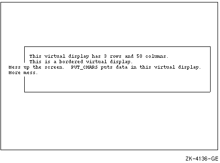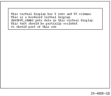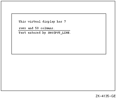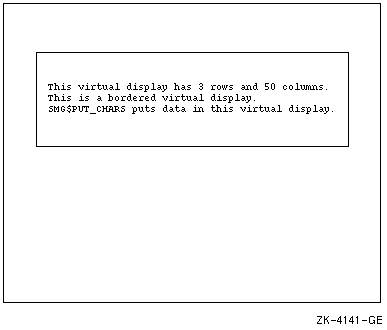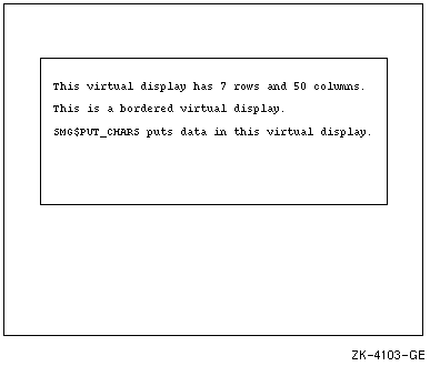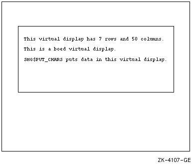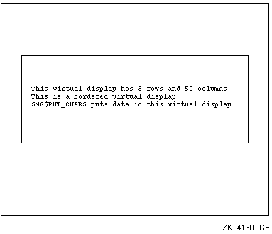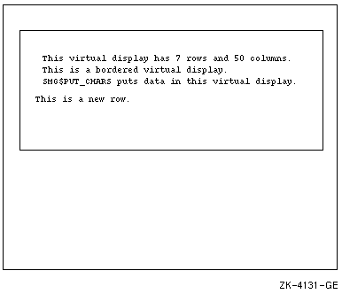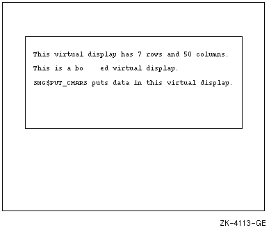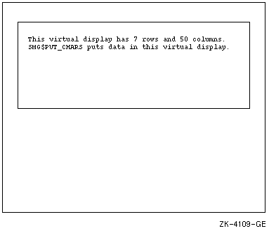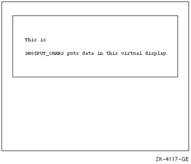 1 ' SMG$PUT_CHARS puts data in this virtual display.', 6, 1 )