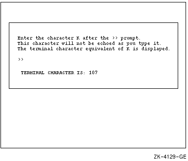 説明SMG$READ_KEYSTROKEルーチンは,指定された仮想キーボードからキー ストロークを読み込み,そのキーストロークの終了文字コードをSMG$K_TRM_keynameの 形式で戻します。読み込まれるキーストロークは画面にエコー表示されません。この キーストロークは標準的な英字,キーパッド・キーまたはファンクション・キー,ま たは矢印キー([↑],[↓],[←],[→])のいずれでもかまいません。SMG$READ_KEYSTROKEルーチンを使用する場合には,ペーストボードと仮想ディス プレイの両方に対してディスプレイのバッチ処理を禁止しておかなければなりません。 VT100,VT200シリーズ,およびVT300シリーズのキーボードから,すべてのキーを 読み込むことができますが,以下は例外です。
