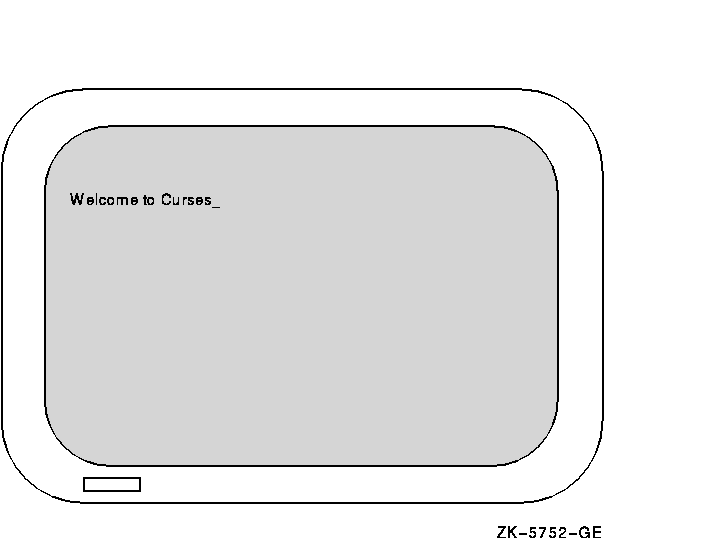 Initially, two windows the size of the terminal screen are predefined by Curses. These windows are called stdscr and curscr . The stdscr window is defined for your use. Many Curses macros default to this window. For example, if you draw a box around stdscr , move the cursor to the left-corner area of the screen, write a string to stdscr , and then display stdscr on the terminal screen, your display will look like that in Figure 6-1.