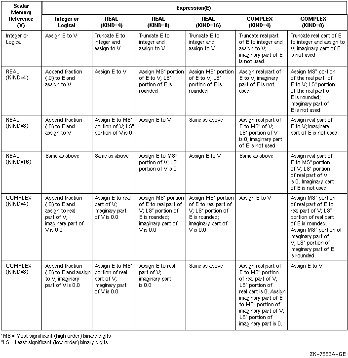 Figure 4-1 summarizes the data conversion rules for numeric assignment statements. REAL(16) is only available on OpenVMS and Tru64 UNIX systems.