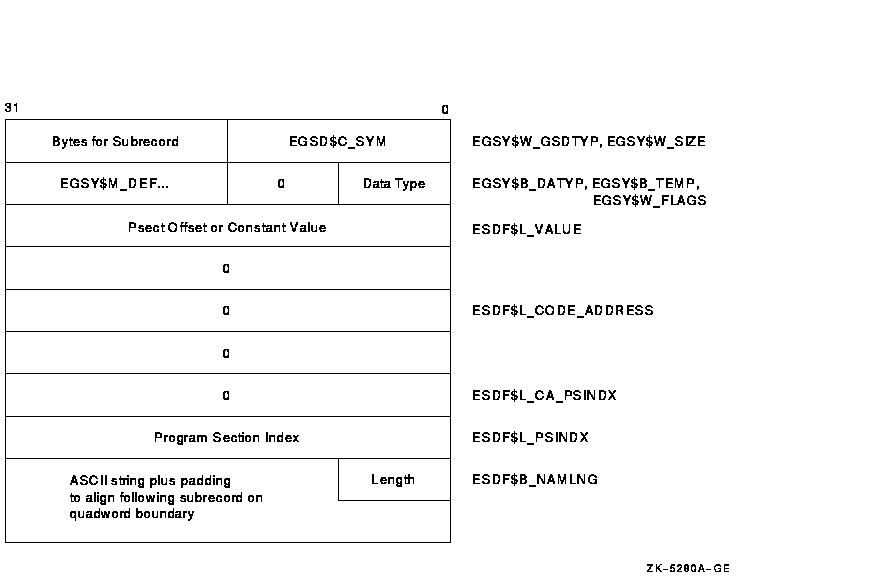 B.3.2.1 GSD Subrecord for a Global Symbol Definition (EGSD$C_SYM with EGSY$V_DEF Set)