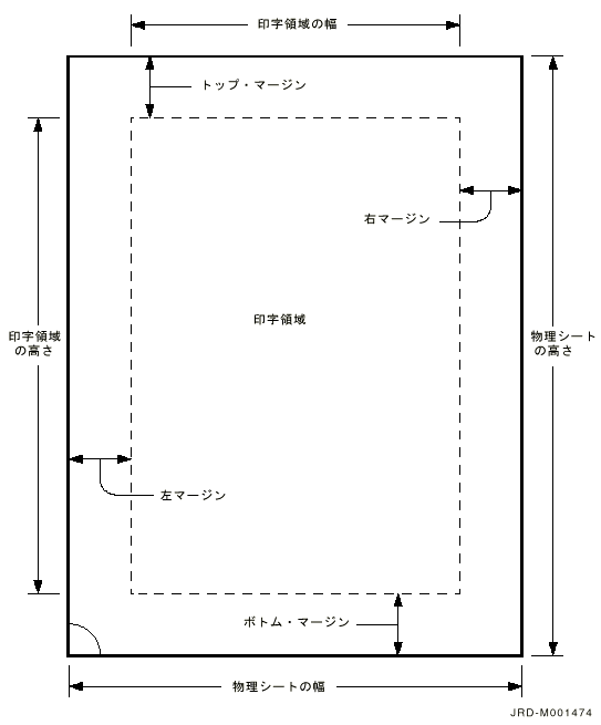 用紙マージンの値を指定するときは,常に上部マージン,下部マージン, 左マージン,右マージンの順に指定してください。 用紙マージンは,ページがポートレート(縦長)方向であるのか, ランドスケープ(横長)方向であるのかとは無関係です。 正の値の場合は,マージンはページの中心に向かって移動し, 負の値の場合は,マージンはページの中心から離れる方向に向かって移動します。