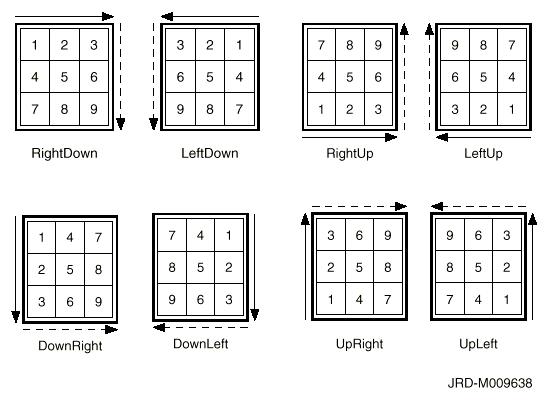 | LeftDown | ページの順序は右から左へ,上から下へ |