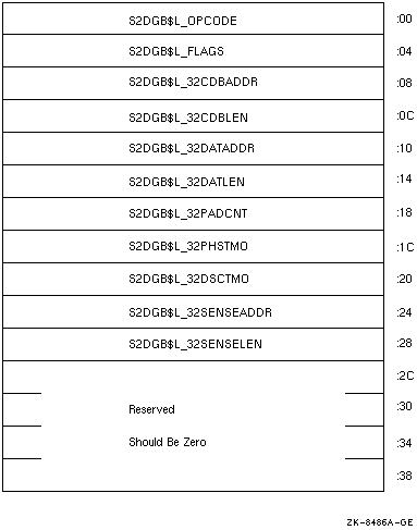 図 7-1 32ビットのOpenVMS SCSI-2 Diagnose Buffer (S2DGB)のレイアウト