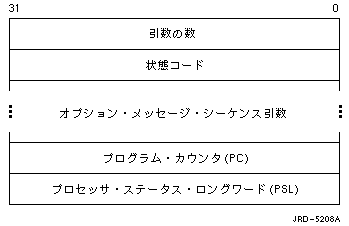 | 例外スタック・フレーム・アドレス | Alphaシステムでは, この引数には例外スタック・フレームのアドレスが格納される (VAXシステムのメカニズム・アレイにはこれに対応する引数はない)。 |