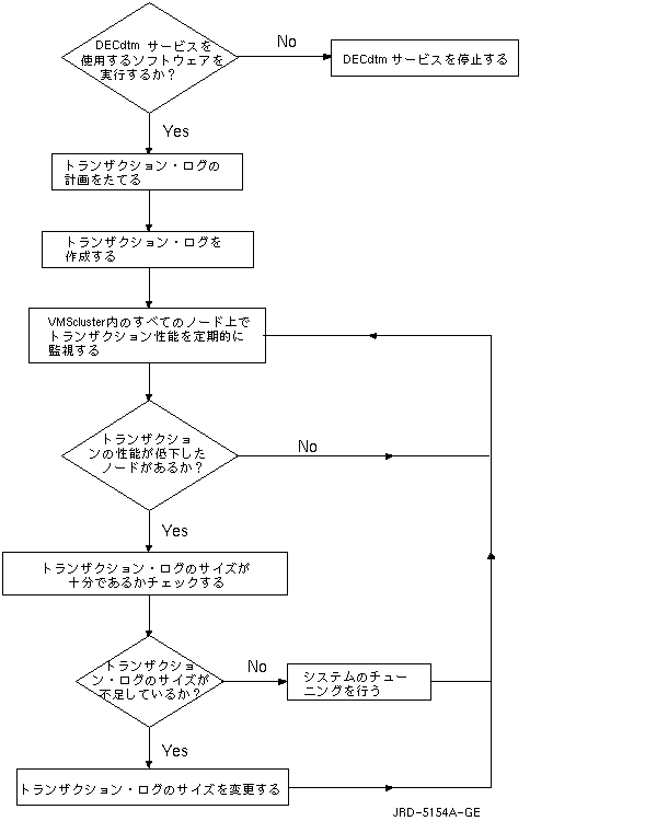 図 25-1は,DECdtmサービスの管理のためのフローチャートです。 このチャートから実際に必要な作業と,その作業の順序を知ることができます。
