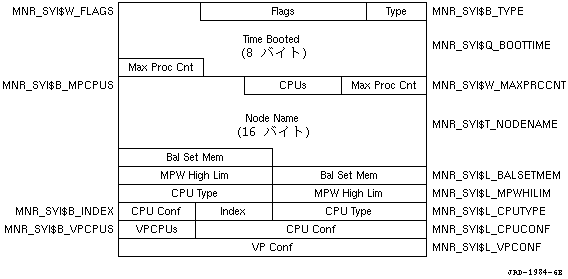 | CPUs | MNR_SYI$B_MPCPUS | CPUの数(1 バイト) |