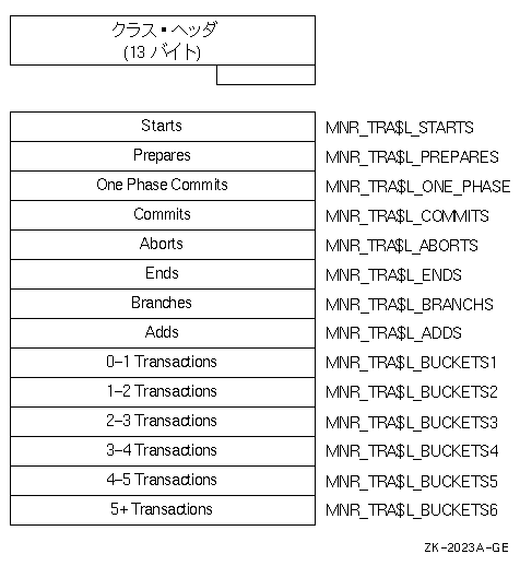 | Ends | MNR_ TRA$L_ENDS | 終了したトランザクションの数。$END_ TRANSが正常終了した回数(ロングワード,C) |