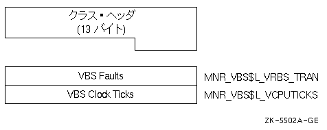 | VBS Clock Ticks | MNR_VBS$L_VCPUTICKS | 仮想バランス・スロット・クロック・ ティックの数(10ミリ秒単位) (ロングワード,C) |