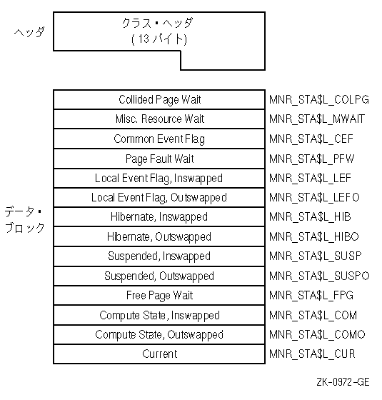 | Common Event Flag Wait | MNR_STA$L_CEF | 共通イベント・ フラグ待ち状態にあるプロセスの数(ロングワード,L) |