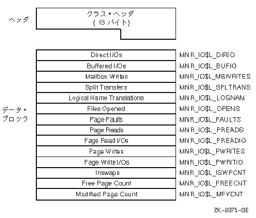 | Buffered I/Os | MNR_ SYS$L_BUFIO | バッファード入出力動作の数(ロングワード,C) |