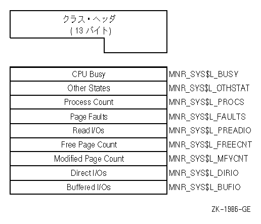 | Other States | MNR_SYS$L_OTHSTAT | LEF,LEFO,HIB,HIBO,COM,COMO,PFW,MWAIT以外の状態にあるプロセスの数( ロングワード,L) |
