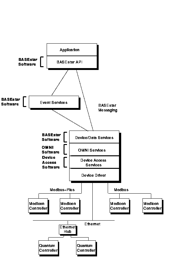 The DAS for Modicon programmable controllers consists of software that provides device-specific communications for users of the OMNI API. BASEstar Open Device/Data Services use the OMNI API to provide device communications to BASEstar Open users.
