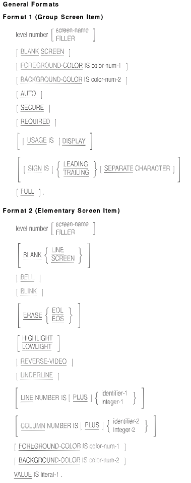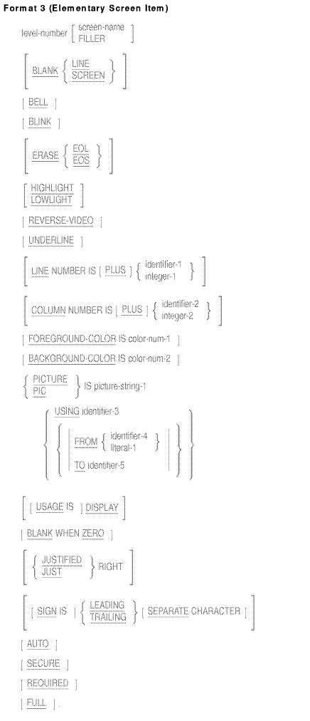 - If both screen-name and FILLER are omitted, the screen