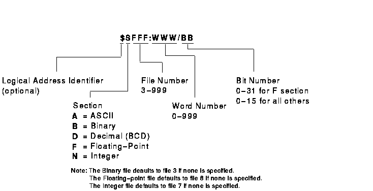 Figure 3-12 PLC-5 ASCII, Binary, Decimal, Floating-Point and Integer Data Table Address Format