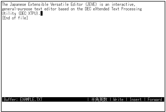 日本語EVEを終了するときは,[Ctrl/Z]を押します。編集セッションは終了し, SAMPLE.TXTというファイルが作成されます。