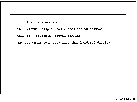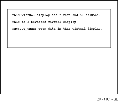 1 ' SMG$PUT_CHARS puts data in this virtual display.', 6, 1 )