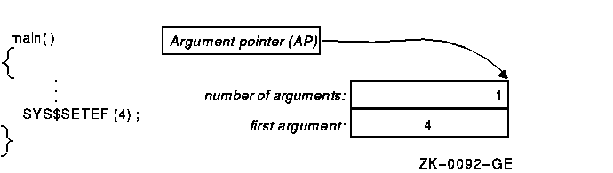 Figure 3-4 shows an argument being passed by immediate value; in this case, the event flag number passed to SYS$SETEF.