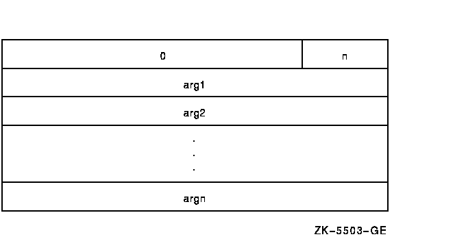 On OpenVMS VAX systems, an argument list is a collection of longwords in memory that represents a routine parameter list and possibly includes a function value. Figure 3-2 shows the structure of a typical OpenVMS VAX argument list.