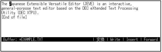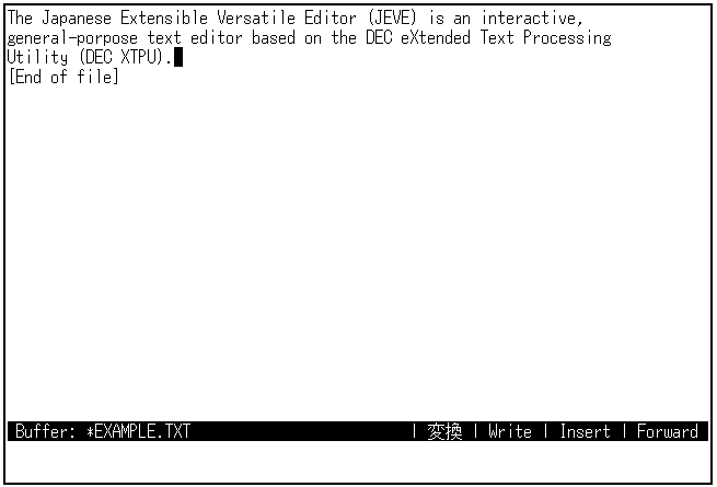 日本語EVEを終了するときは,[Ctrl/Z]を押します。編集セッションは終了し, SAMPLE.TXTというファイルが作成されます。