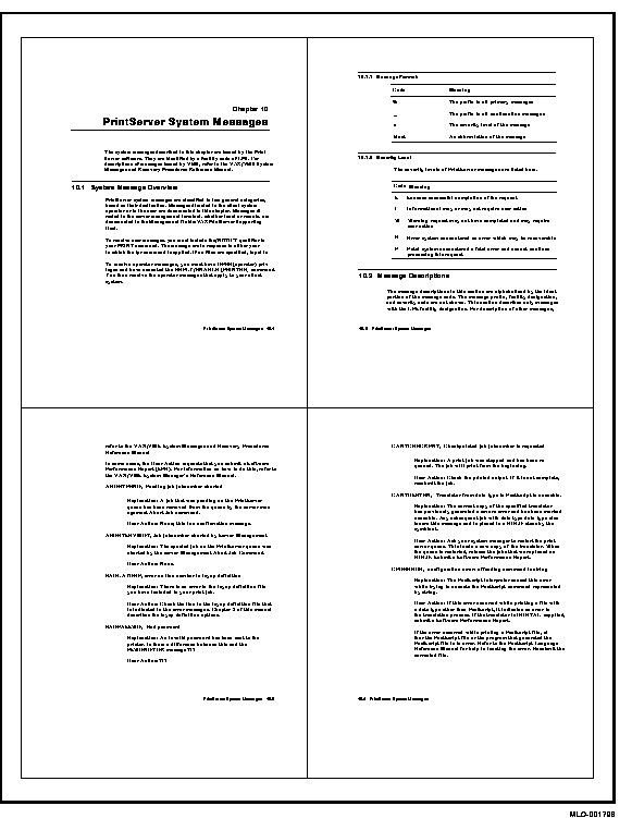 1枚の用紙に複数のページを印刷するために,DECprint Supervisorソフトウェアは文書内の論理ページのサイズを変更し, 物理的な用紙上の領域に収まるようにします。しかし, この操作を実行しても,アスペクト比(ページの高さと幅の比率)は変更されません。