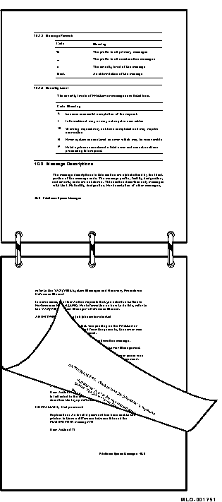 ページの印刷方向は縦長方向ですが,内容を読むときは用紙を横長方向に持たなければなりません。 同じページをランドスケープ(横長)・ページとして印刷した場合には, 図 12-6に示すように, 内容を読むために用紙を縦長方向に持たなければなりません。