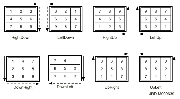 | LeftDown | ページの順序は右から左へ,上から下へ |