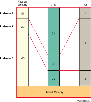 OpenVMSの独立インスタンスは共用メモリの使用に参加しません。基本オペレーティング・ システムもアプリケーションも,共用メモリにアクセスしません。