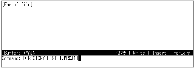 [Do]キーを押して,日本語EVEの INCLUDE FILE コマンドを入力することにより, ファイル全体をバッファに追加できます。 コマンド・ウィンドウの Include File: というプロンプトに対してファイル名を入力します (SET DIRECTORY LIST コマンドを使用していないとき)。