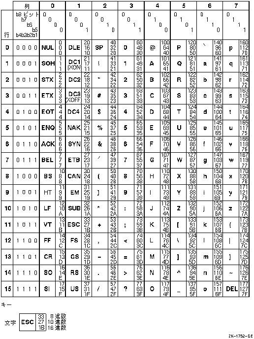 表 B-1は,DCL文字セットの文字の一覧です。