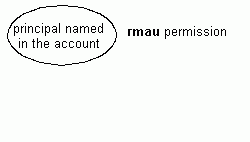 To delete accounts, you must have the rmau permissions for the principal that is named in the account. For example, to add or delete the account for the principal named