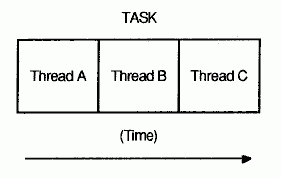 In a multithreaded program using the pipelining model, each thread represents a step in the task. The following figure shows a task performed by three threads in a pipelining model.