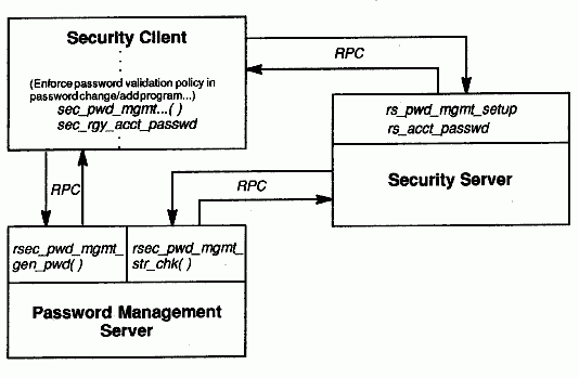 · The password management network interface, rsec_pwd_mgmt_*( ), which enables a password management server to accept and process password strength checking and generation requests.