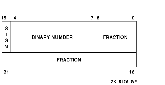 The S_floating floating-point number format consists of four contiguous bytes, starting on an arbitrary byte boundary. Bits are labeled from the right, 0 to 31. The form of an S_floating number is sign magnitude with bit 31 the sign bit, bits 30 to 23 an excess-127 binary exponent, and bits 22 to 0 a normalized 24-bit fraction with the redundant most significant fraction bit not represented unless the exponent is 0. If the exponent is 0, a nonzero fraction represents an unnormalized 23-bit fraction.