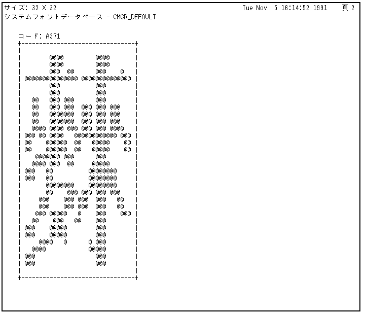 図 4-5  例2のコマンドによって表示されたビットマップ形式の文字パターン- (32×32)