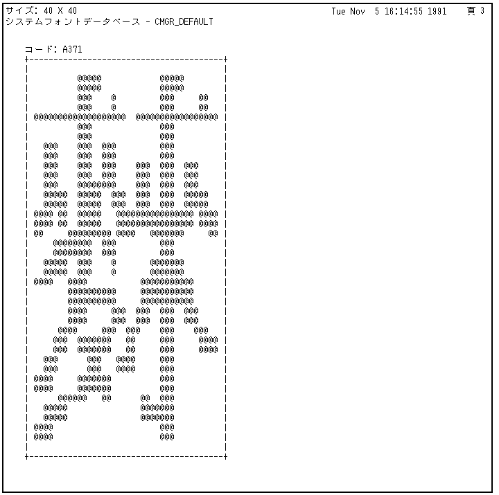図 4-6 例2のコマンドによって表示されたビットマップ形式の文字パターン- (40×40)