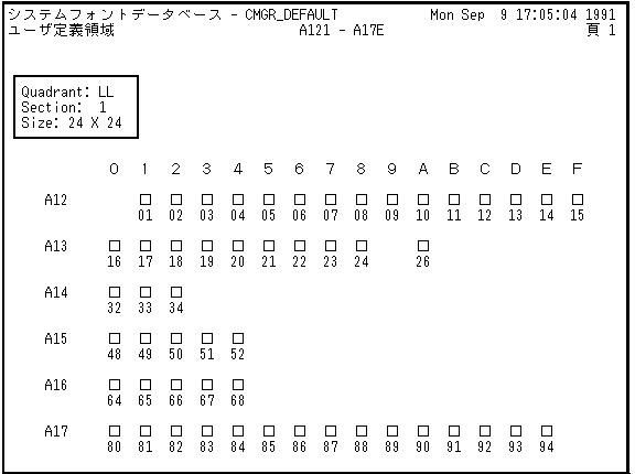 図 4-7 例1のコマンドで作成された文字コード・テーブル(その1)